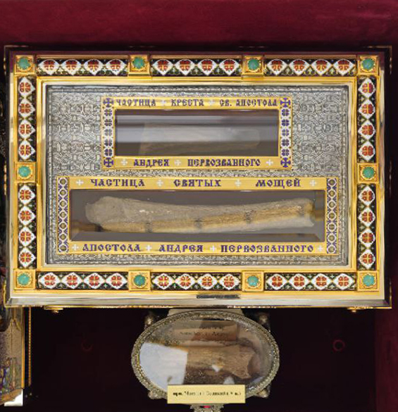 Частица мощей и частица креста св. апостола Андрея Первозванного
